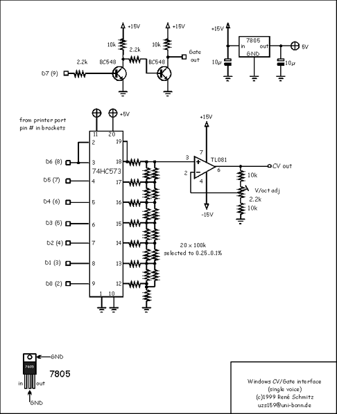 The interface allows you to circumvent the serial midi2CV interfaces. For all the people who (like me) always have a computer near their synth, it is a cheap and easy to do solution. Here is the older version of CVMIDI, a single CV and single Gate output. I have drawn a new schematic for the interface, so forget about the image inside the zipped file.